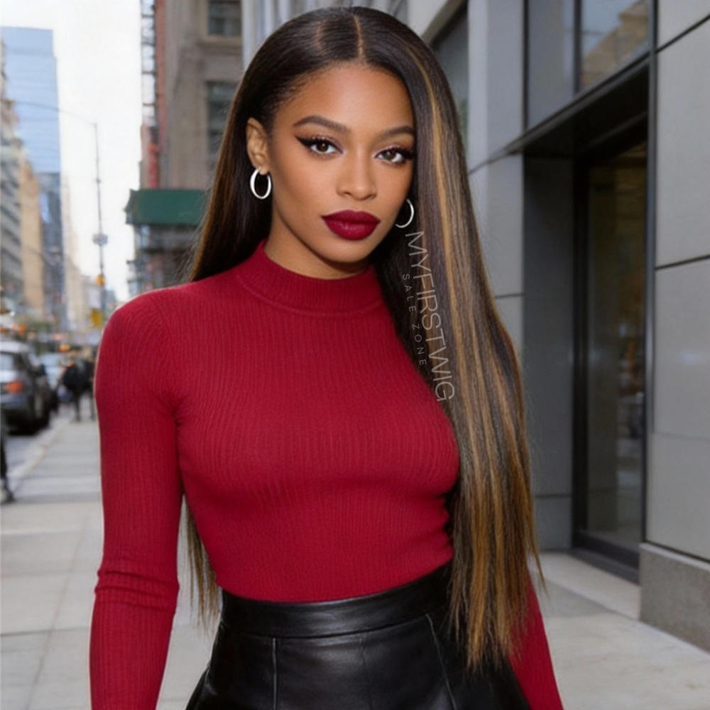 C-Shape Ear Fit 7x5" Wear & Go Glueless Wig 180% Density - Highlight Brown Straight Wig- PM050
