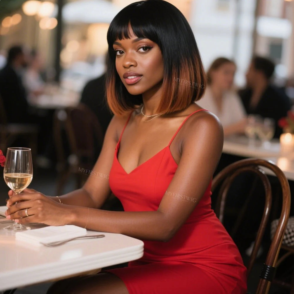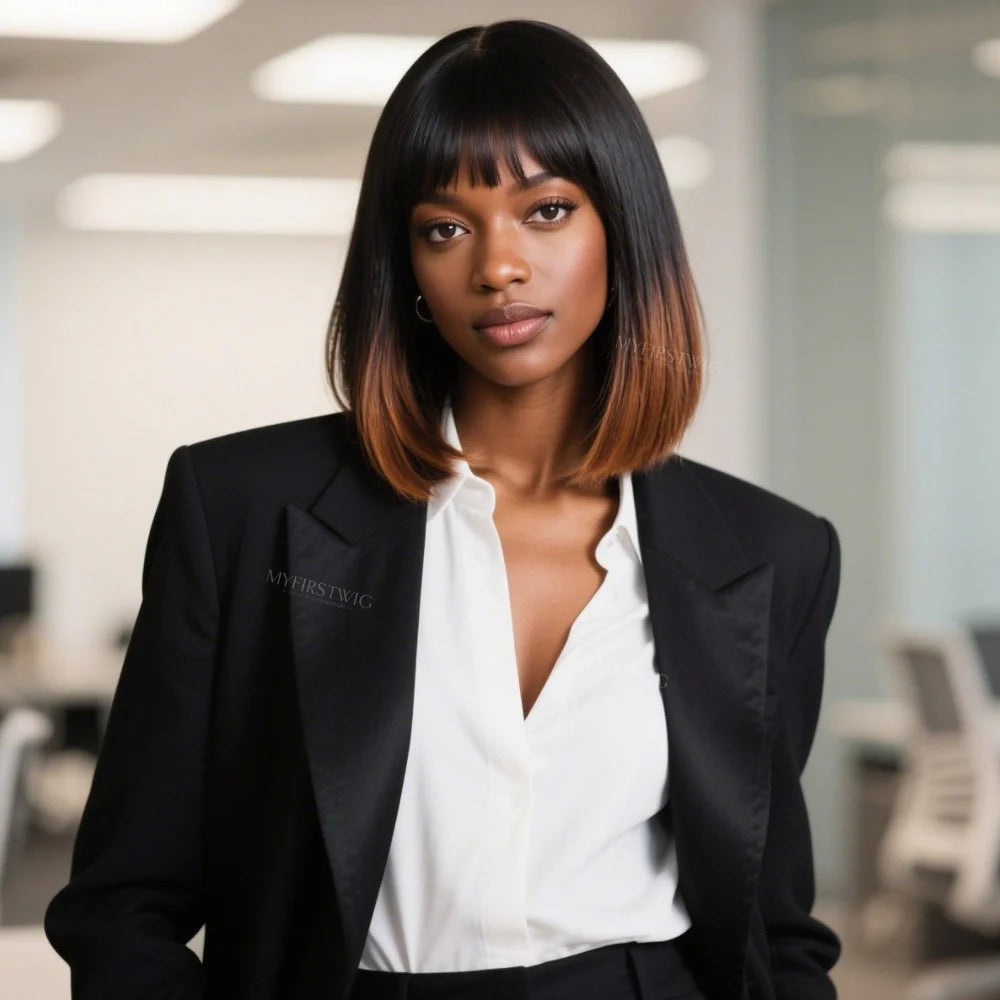 Wig For Office - Ombre Brown With Baby Bangs HD Lace Wear & Go Glueless Wig - MAI001AP