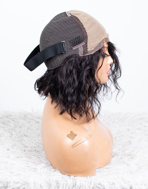 Die Kappe ist mit einer 360°-Spitzenumrandung versehen, die es Ihnen ermöglicht, einen hohen Dutt oder Pferdeschwanz zu tragen. Um die Perücke zu sichern, verfügt die Myfirstwig 360 Lace-Perücke über 4* Kämme, 1* verstellbaren Riemen und 1* Gummiband innerhalb der Kappenkonstruktion, um Ihre Perücke an 4 verschiedenen Stellen fest und flach zu befestigen: vorne, links, rechts und hinten. Das bedeutet, dass Sie mit der 360 Lace-Perücke unsere Perücke tragen und stylen können, wie Sie möchten, sie ist jedoch in 360°-Winkeln gesichert.