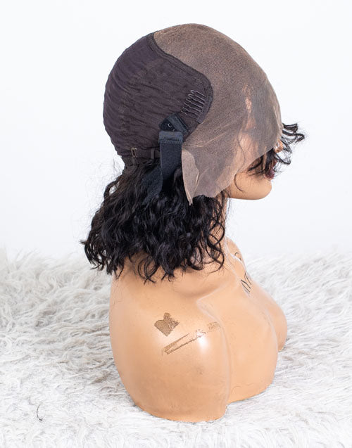 Die Kappe ist mit einer 360°-Spitzenumrandung versehen, die es Ihnen ermöglicht, einen hohen Dutt oder Pferdeschwanz zu tragen. Um die Perücke zu sichern, verfügt die Myfirstwig 360 Lace-Perücke über 4* Kämme, 1* verstellbaren Riemen und 1* Gummiband innerhalb der Kappenkonstruktion, um Ihre Perücke an 4 verschiedenen Stellen fest und flach zu befestigen: vorne, links, rechts und hinten. Das bedeutet, dass Sie mit der 360 Lace-Perücke unsere Perücke tragen und stylen können, wie Sie möchten, sie ist jedoch in 360°-Winkeln gesichert.