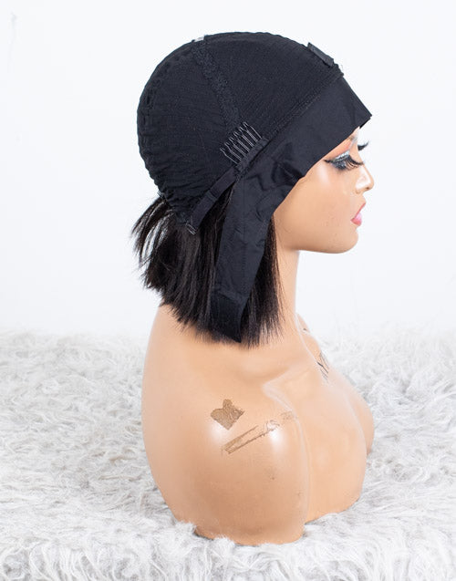 Warum ist die MyFirstWig Closure Perücke kleberlos? Alle unsere Perücken sind mit einem Gummiband und einem verstellbaren Riemen ausgestattet, sodass Sie keinen Kleber oder Gel verwenden müssen, um sie beim Tragen fest zu befestigen.