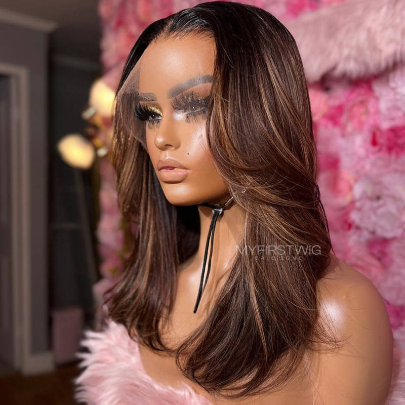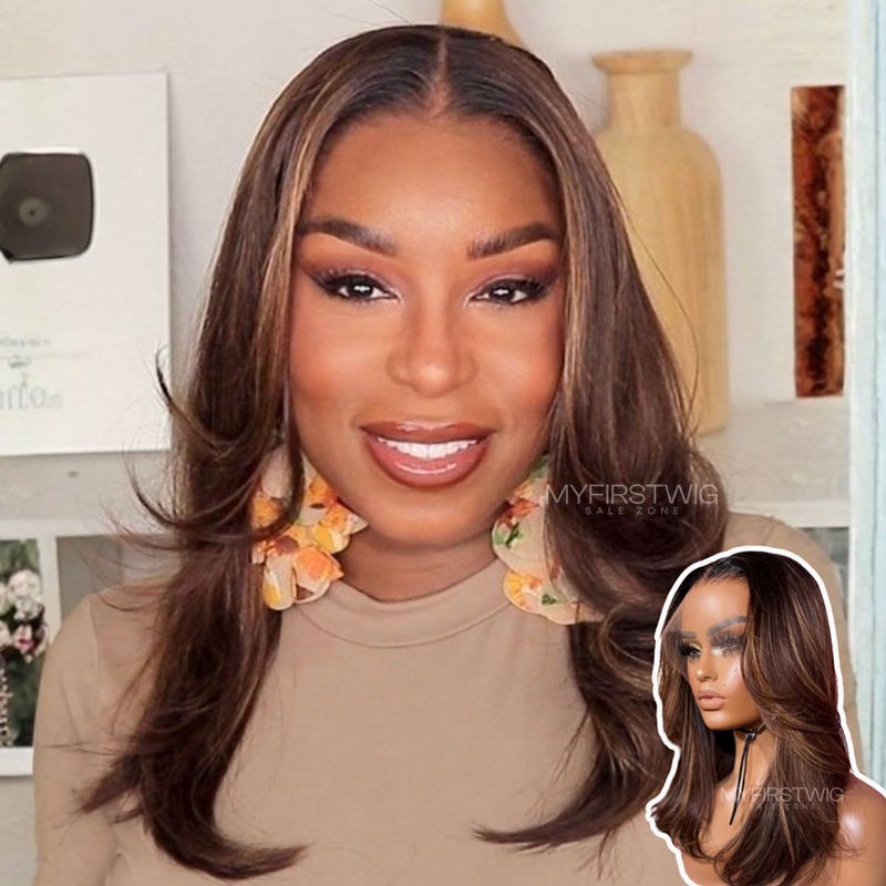 16-20 Zoll Highlight Braun Glatt HD Lace Wear & Go Kleberlose Perücke - CLS011