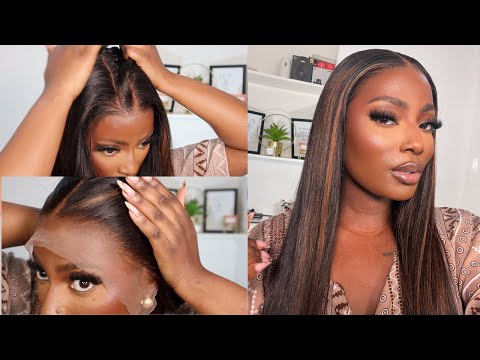 13x6 Highlight Braun Glatt 14-20 Zoll Unsichtbare, kleberlose Lace Front Perücke - NCT001