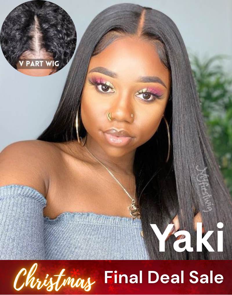 16-20 Zoll Yaki glatte Perücke mit Mittelscheitel und V-Teil - VPS003
