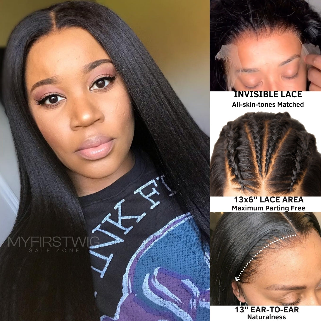 Merkmale der MyFirstWig Lace Wig: 100 % indisches Echthaar, unsichtbare Air Lace-Spitze + vorgefertigt + Kappe ohne Klebstoff.