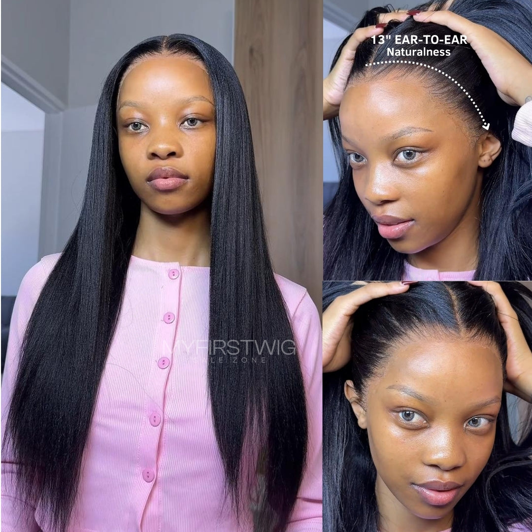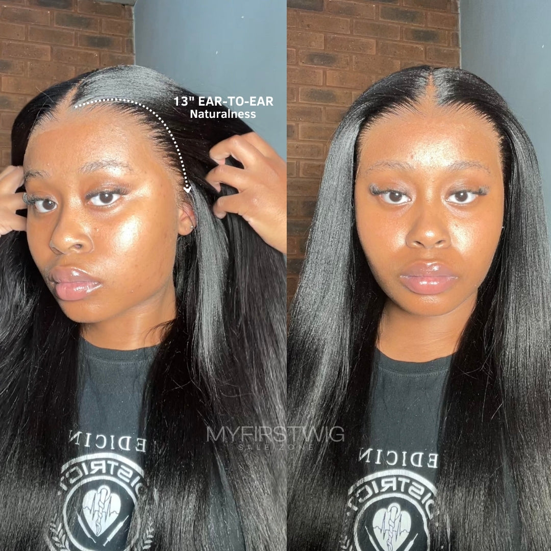 13x6 lange, glatte Perücke mit Lagen, nicht erkennbare, kleberlose Lace-Front-Perücke – NCT005