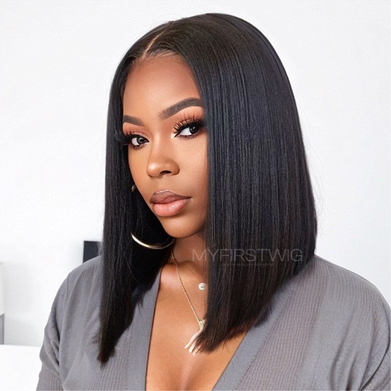 13x6 Glatter, langer Bob, unsichtbare, kleberlose Lace-Front-Perücke – ANI8004