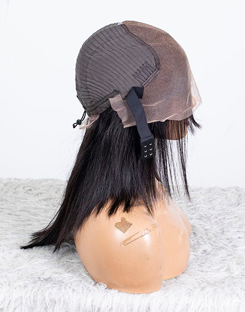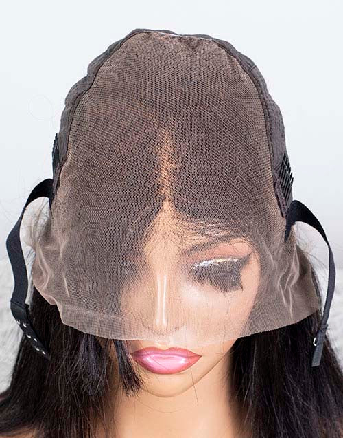 Die Kappe ist mit einer 360°-Spitzenumrandung versehen, die es Ihnen ermöglicht, einen hohen Dutt oder Pferdeschwanz zu tragen. Um die Perücke zu sichern, verfügt die Myfirstwig 360 Lace-Perücke über 4* Kämme, 1* verstellbaren Riemen und 1* Gummiband innerhalb der Kappenkonstruktion, um Ihre Perücke an 4 verschiedenen Stellen fest und flach zu befestigen: vorne, links, rechts und hinten. Das bedeutet, dass Sie mit der 360 Lace-Perücke unsere Perücke tragen und stylen können, wie Sie möchten, sie ist jedoch in 360°-Winkeln gesichert.